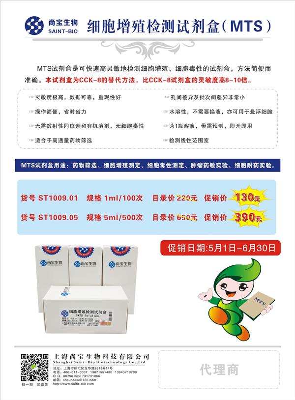 為答謝客戶,公司特推出細胞增殖檢測試劑盒(MTS)低價促銷活動