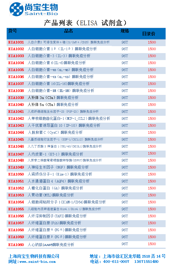上海尚寶生物科技有限公司,ELISA試劑盒產(chǎn)品目錄